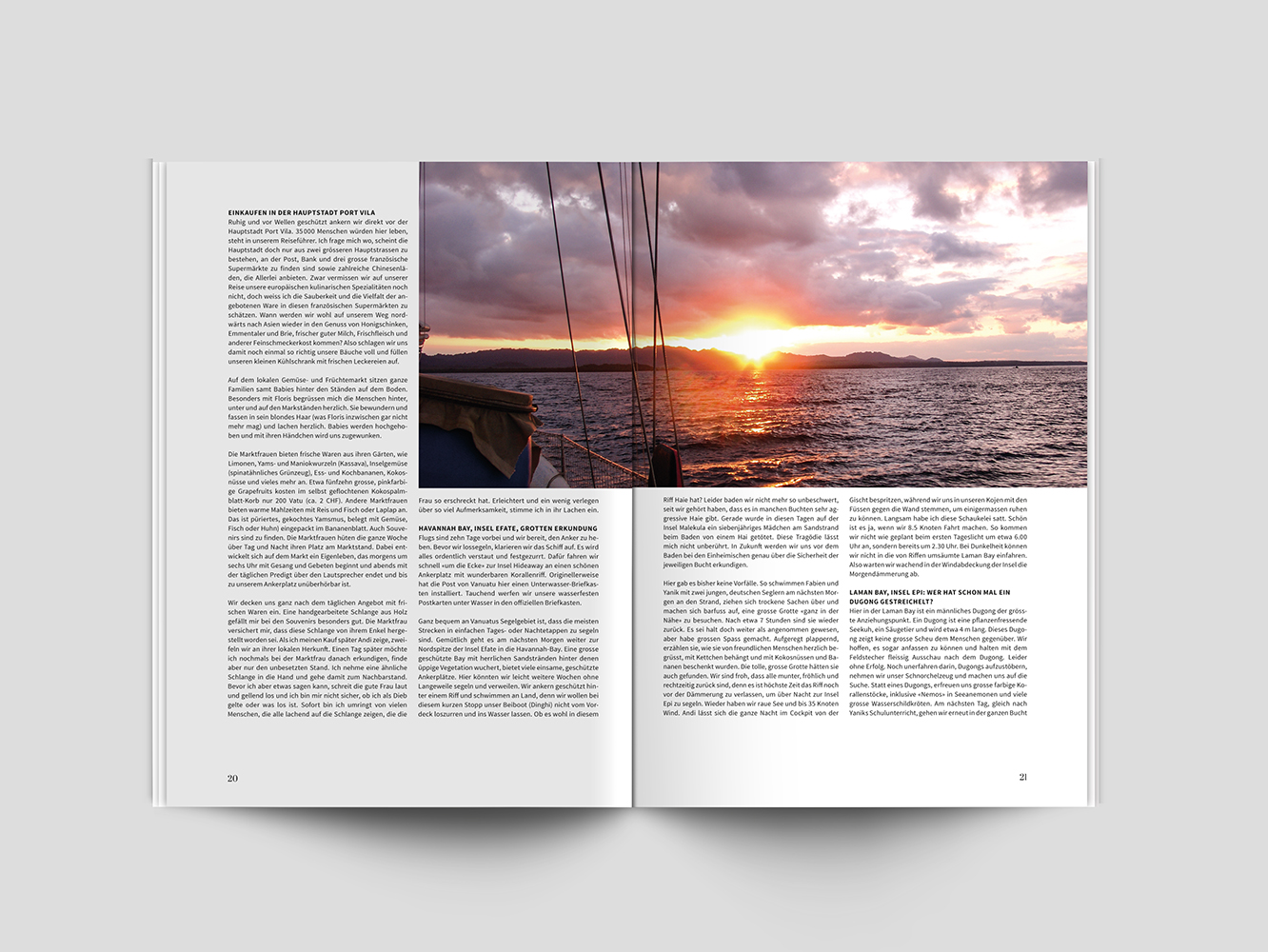 Für die Freizeitarbeiten Ausstellung 2017 habe ich in meiner Freizeit ein Buch gestaltet. Das Buch ist der Bericht der zweiten Etappe unserer Weltreise. Ich durfte dafür den Reisebericht meiner Mutter und unsere Bilder verwenden. Ich habe das Buch konzipiert, typografisch und gestalterisch umgesetzt.