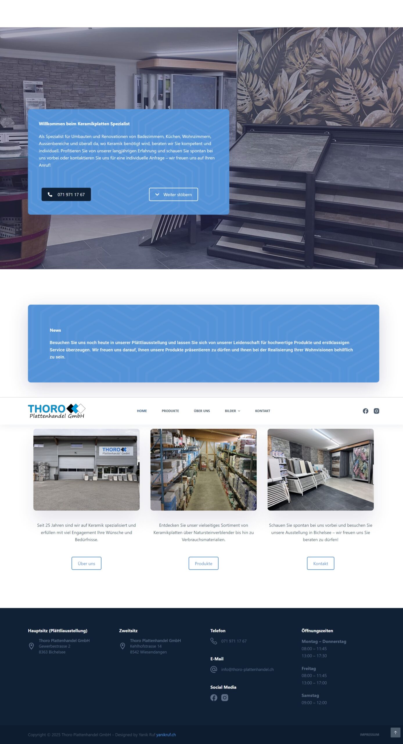 Für die Thoro Plattenhandel GmbH, einen etablierten Steinplattenhändler in der Schweiz, habe ich eine moderne und benutzerfreundliche Website konzipiert, gestaltet und technisch umgesetzt. Ziel war es, die hochwertigen Produkte und langjährige Expertise des Unternehmens ansprechend online zu präsentieren.