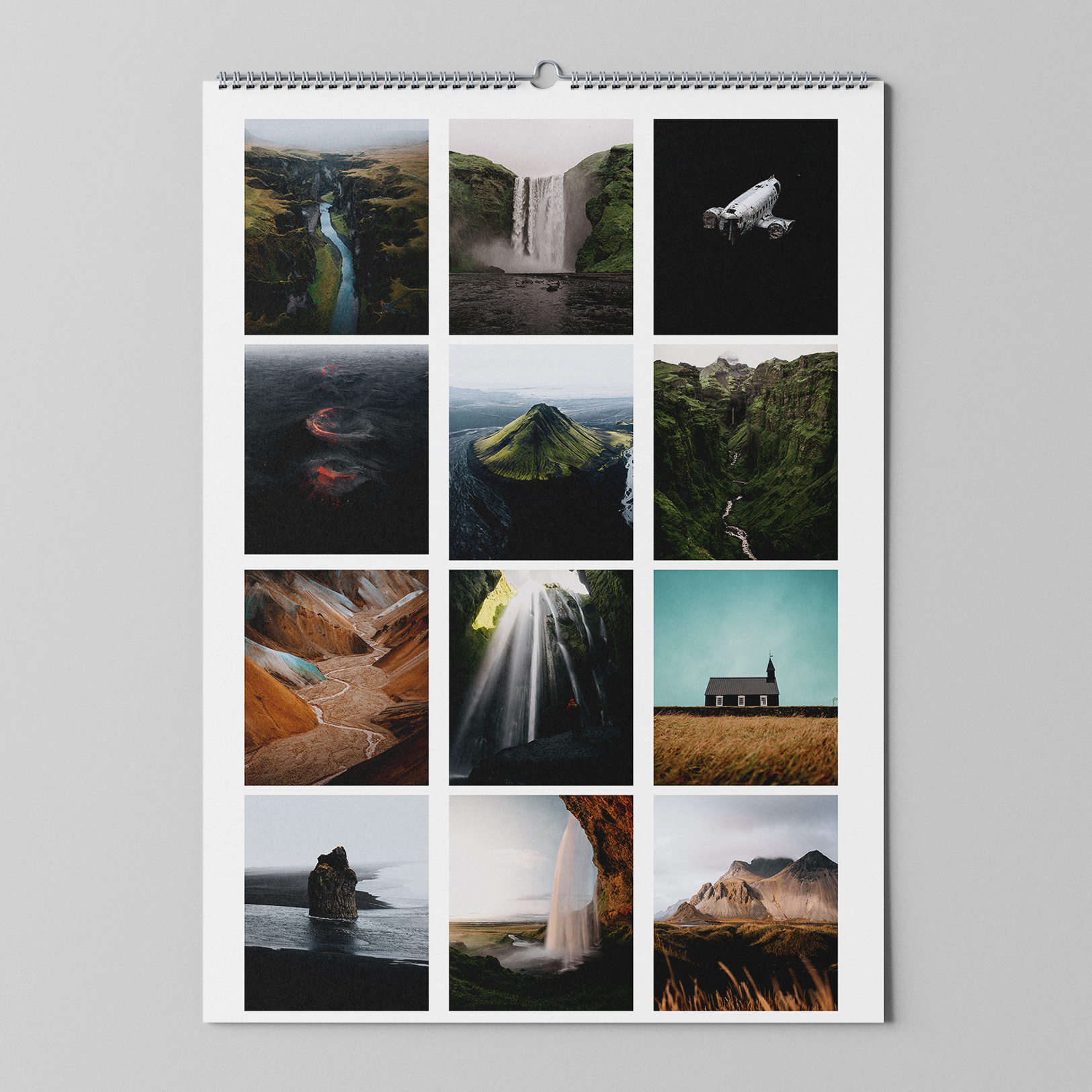 Mein Kalender zeigt 12 atemberaubende Fotos, die ich im vergangenen Jahr in Island aufgenommen habe. Jeder Monat zeigt ein anderes Bild, wunderschön gedruckt auf hochwertigem Papier.